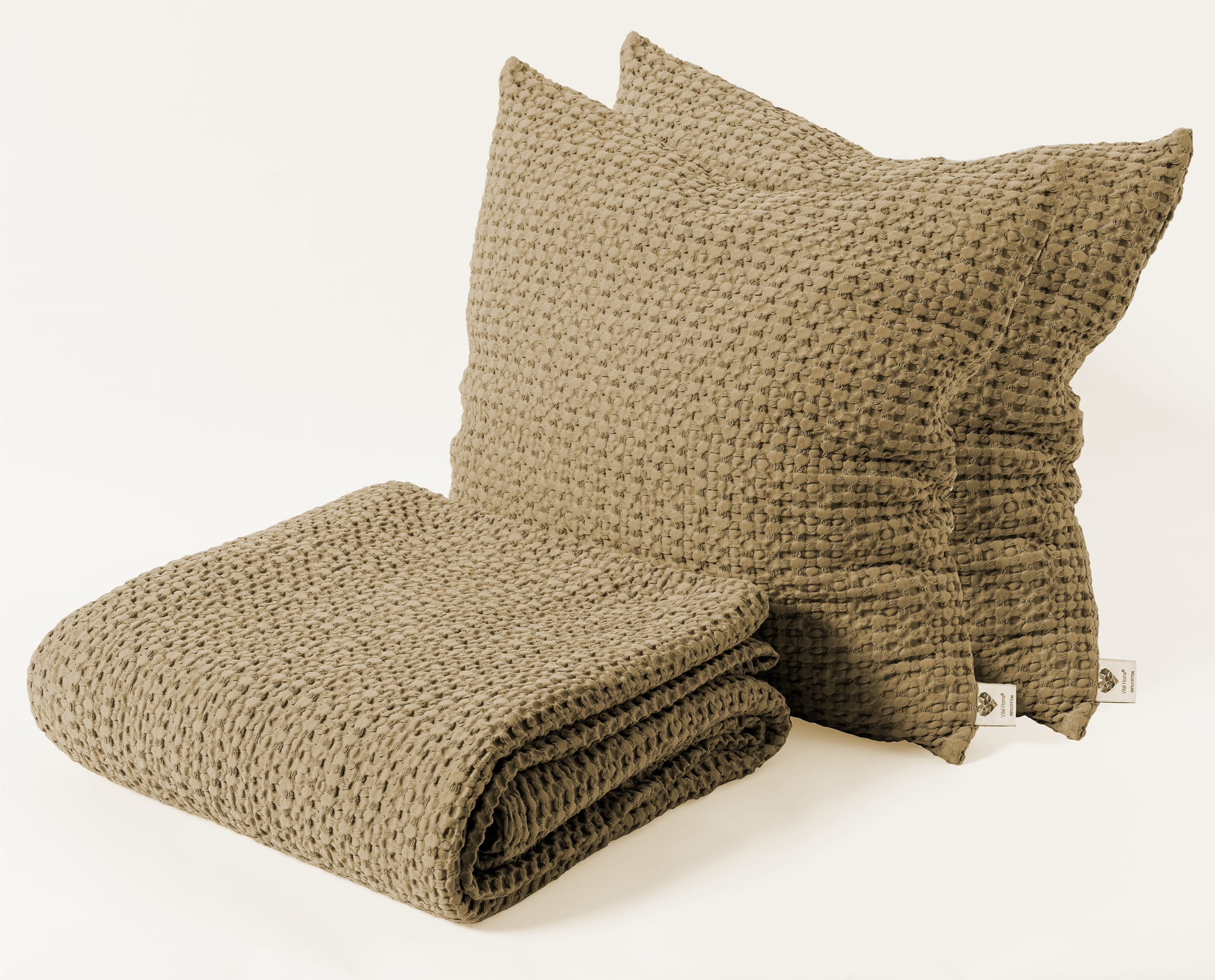Oferta dotyczy jednej sztuki portugalskiej narzuty z frędzelkami z kolekcji Favo Design w prezentowanym na zdjęciu kolorze: BEIGE M34276