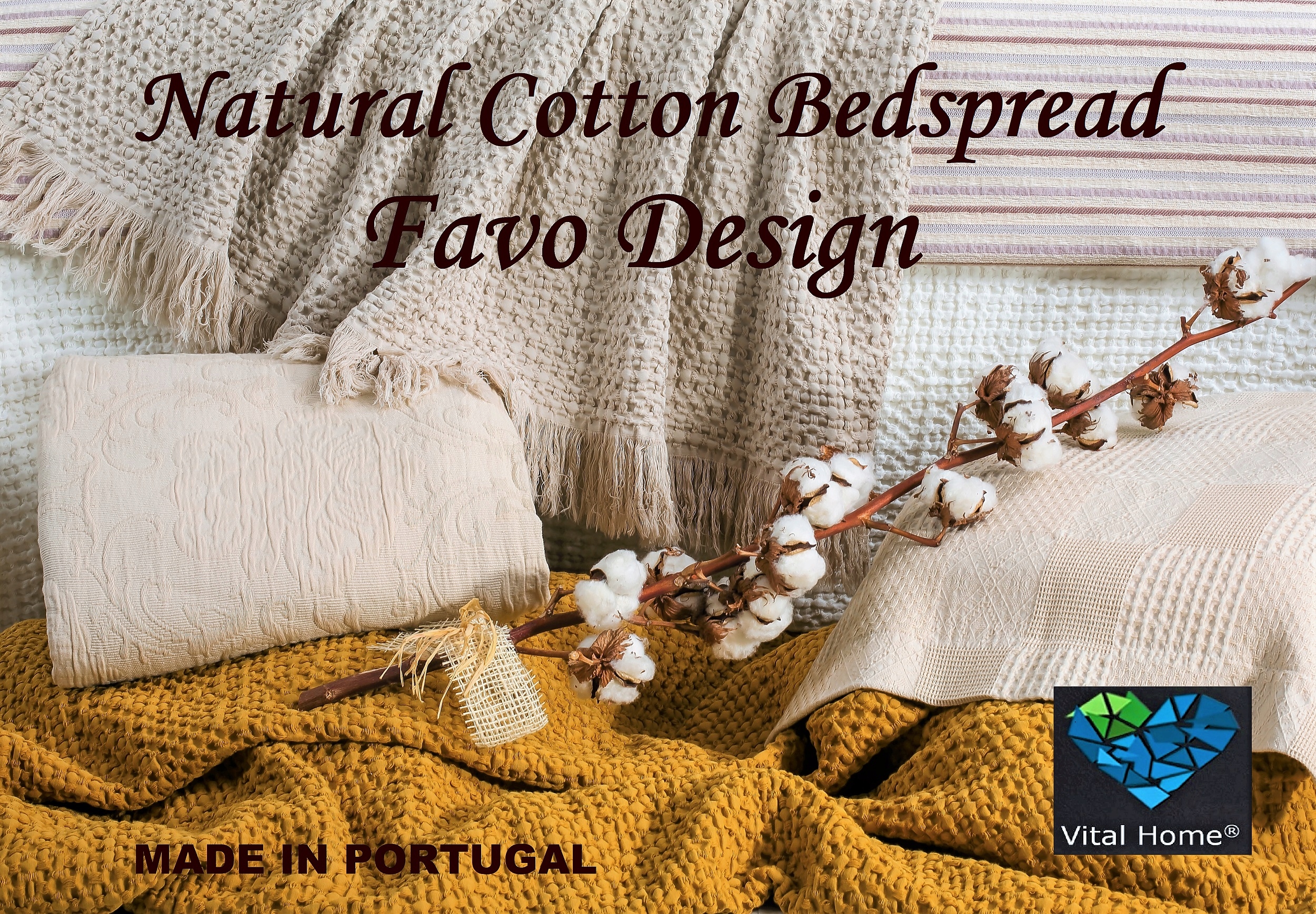 Narzuty Vital Home, dzięki innowacyjnej technologii produkcji, wykorzystującej 100 letnie doświadczenie portugalskiego producenta oraz zastosowaniu najwyższej jakościowo bawełny, umożliwiają właściwą cyrkulację powietrza, tak bardzo ważną dla pościeli i materaca. Narzuty Vital Home są wyjątkowo przyjemnie miękkie w dotyku.
