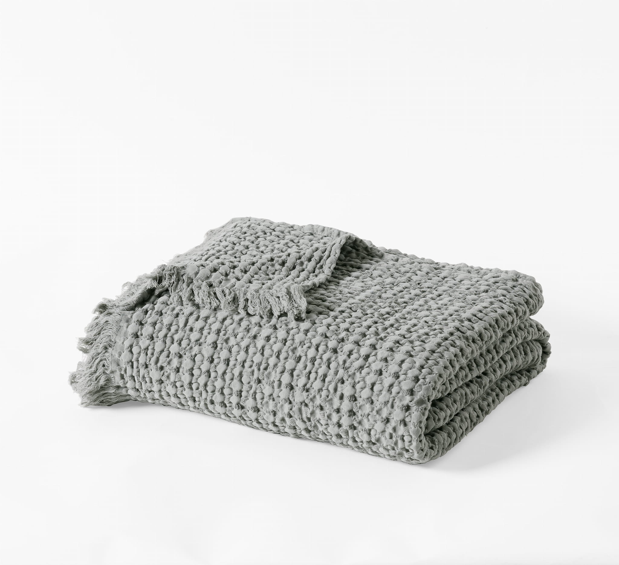 Oferta dotyczy jednej sztuki portugalskiej narzuty z frędzelkami z kolekcji Favo Design w prezentowanym na zdjęciu kolorze: SILEX M28334