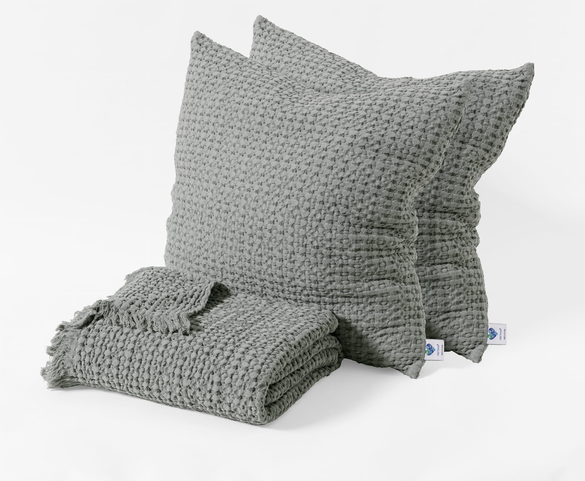 Oferta dotyczy jednej sztuki portugalskiej poszewki na poduszkę z kolekcji Favo Design, wykonanej z misternie utkanej bawełny o wzorze gofra w prezentowanym na zdjęciu kolorze: SILEX M28334