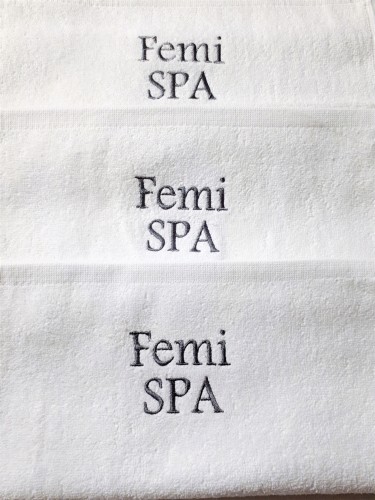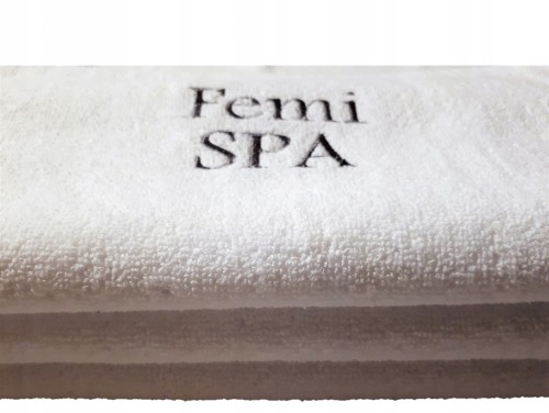 Istnieje możliwość zakupu ręczników z wykonanym dowolnym wzorem  haftu. Prezentowane na zdjęciu  przykładowe wyhaftowane logo jest o rozmiarze 11 cm x 5 cm. Prezentowane hafty ręczników to wybrana próbka naszych możliwości.  Minimalna ilość zamówienia to 50 szt.  Istnieje możliwość wykonania hafu także na ręcznikach o mniejszej gramaturze bawełny. Przy większych ilościach stosujemy atrakcyjne rabaty. Ostateczną cenę zawsze podajemy po otrzymaniu pliku z logo.