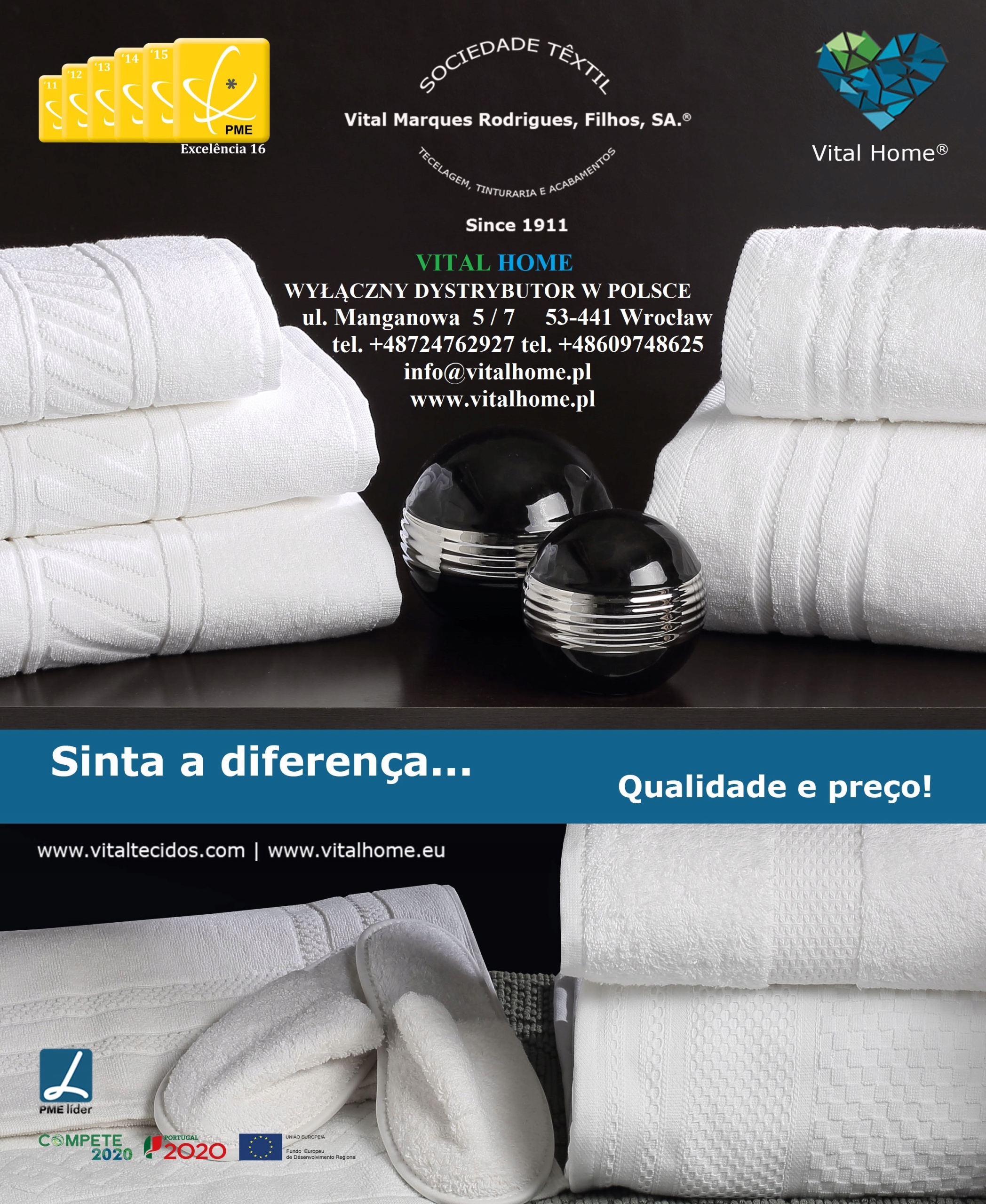 Oryginalne Portugalskie ręczniki Vital Home doskonale spełniają najwyższe wymagania SPA , hoteli, pod względem jakości, ceny  jak i długotrwałego użytkowania. Vital Home to znana portugalska  marka z ponad 100 letnią tradycją w produkcji najlepszych wyrobów z bawełny.